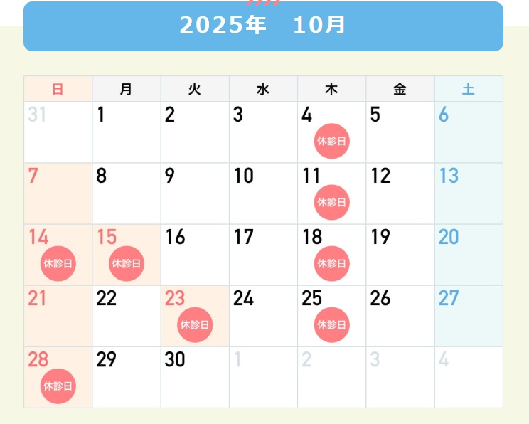 10月の診療日カレンダーについて