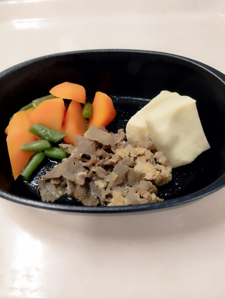 高野豆腐は植物性たんぱく質が豊富で、低糖質・低脂質。カルシウムや鉄分も含み、腸内環境を整えるレジスタントプロテインも特徴です。一方、牛肉は動物性たんぱく質と鉄分、亜鉛、ビタミンB群が豊富で、筋肉や血液の生成に重要です。両者が組み合わさったバランスの良いメニューになっています。